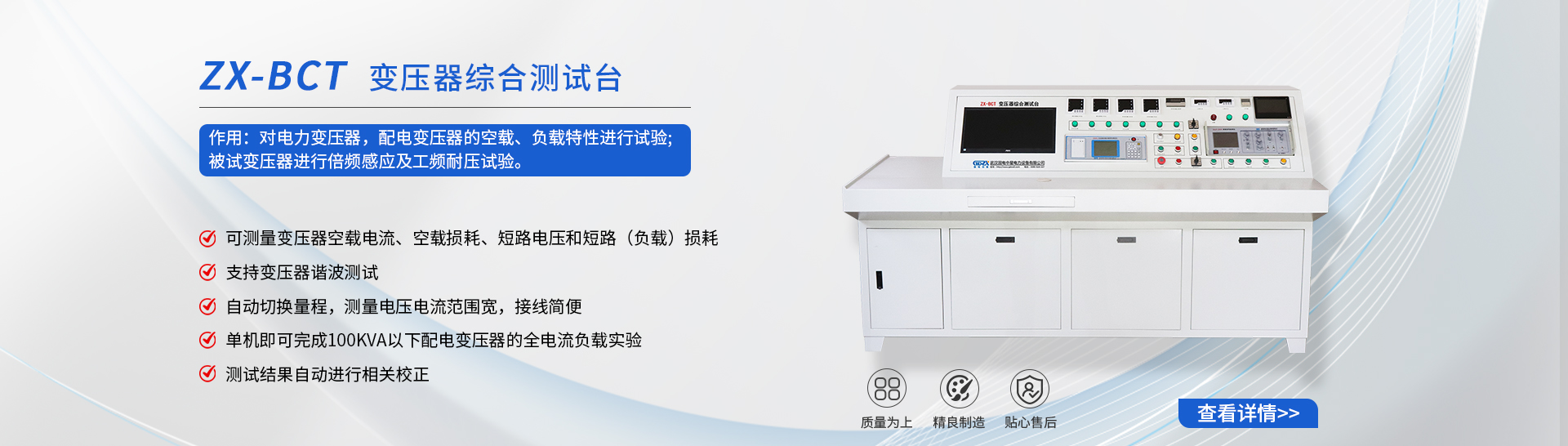 武漢國電中星電力設(shè)備有限公司是一家專業(yè)從事電力、電氣測試設(shè)備,集研發(fā)、生產(chǎn)、經(jīng)營于一體的高新技術(shù)企業(yè)。公司擁有雄厚的技術(shù)人才,并通過與武漢各大院校、科研院所的廣泛合作,向全國電力行業(yè)提供大量的優(yōu)質(zhì)產(chǎn)品與完善的售后服務(wù)。公司以產(chǎn)品質(zhì)量為企業(yè)的核心。以市場導(dǎo)向,以滿足用戶為主題.得到廣大用戶贊譽(yù)。